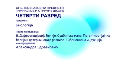 СШ4 – Биологија, 8. час: Диференцијација ћелије. Судбинске мапе. Потентност јајних ћелија и детерминација развића...