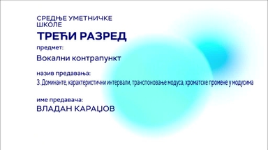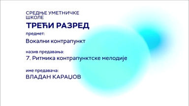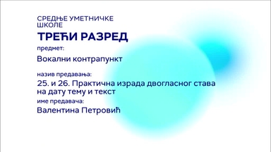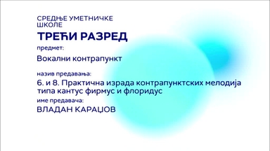СШ3 – Вокални контрапункт, 6. и 8. час: Практична израда контрапунктских мелодија типа кантус фирмус и флоридус