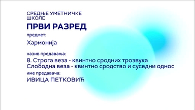 СШ1 – Хармонија, 8. час: Строга веза - квинтно сродних трозвука. Слободна веза - квинтно сродство и суседни однос