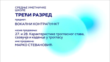 СШ3 – Вокални контрапункт, 27. и 28. час: Карактеристике трогласног става, сазвучја и каденце у трогласу