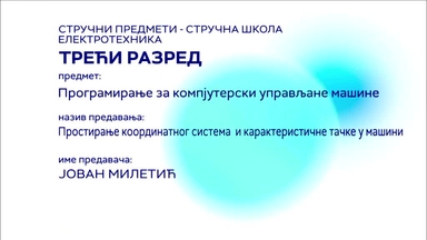 СШ3 – Програмирање за компјутерски управљане машине: Простирање координатног система и карактеристичне тачке у машини