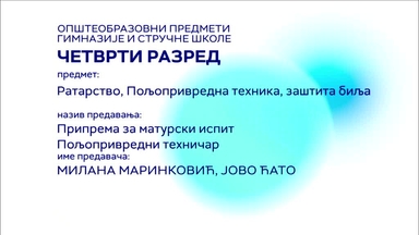 СШ4 – Ратарство, пољопривредна техника, заштита биља: Пољопривредни техничар – припрема за матурски испит