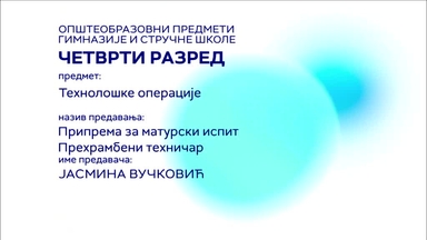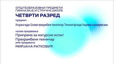 СШ4 – Исхрана људи, основи прехрамбене технологије: Прехрамбени техничар – припрема за матурски испит