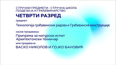 СШ4 – Технологија грађевинских радова и грађевинске конструкције: Архитектонски техничар – припрема за матурски испит