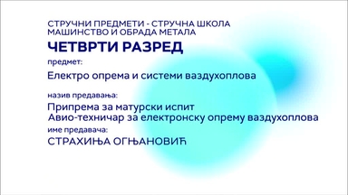 СШ4 – Електро опрема и системи ваздухоплова: Авио-техничар за електронску опрему ваздухоплова – припрема за матурски испит