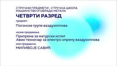 СШ4 – Погонске групе ваздухоплова: Авио-техничар за електро опрему ваздухоплова – припрема за матурски испит