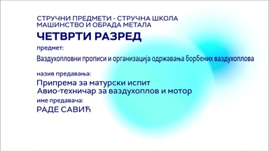 СШ4 – Ваздухопловни прописи и организација одржавања борбених ваздухоплова: Авио-техничар за ваздухоплов и мотор – припрема