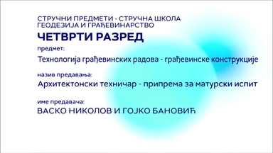 СШ4 – Технологија грађевинских радова – грађевинске конструкције: Архитектонски техничар – припрема за матурски испит