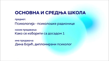 ОШ и СШ – Психологија – психолошке радионице: Како се изборити са досадом 2 Предавач: Дина Бојић, дипломирани психолог