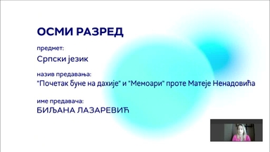 ОШ8 – Српски језик: „Почетак буне на дахије“ и „Мемоари“ проте Матеје Ненадовића