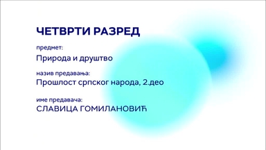 ОШ4 – Природа и друштво: Настанак и развој модерне српске државе и српски народ у Југославији, 1. део