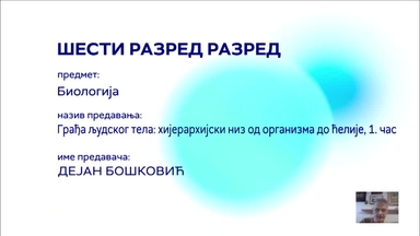 ОШ6 – Биологија, 1. час: Грађа људског тела - хијерархијски низ од организма до ћелије Име предавача: Дејан Бошковић