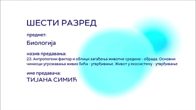 ОШ6 – Биологија, 23. час: Антропогени фактор и облици загађења животне средине (обрада); Основни чиниоци...