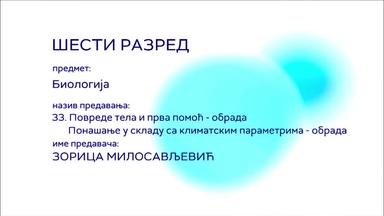 ОШ6 – Биологија, 33. час: Повреде тела и прва помоћ (обрада). Понашање у складу са климатским параметрима (обрада)
