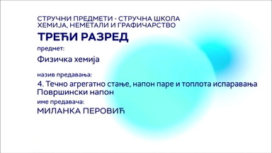 СШ3 – Физичка хемија, 4. час: Течно агрегатно стање, напон паре и топлота испаравања, површински напон