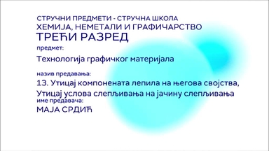 СШ3 – Технологија графичког материјала, 13. час: Утицај компонената лепила на његова својства, утицај услова слепљивања...