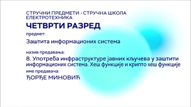 СШ4 – Заштита информационих система, 8. час: Употреба инфраструктуре јавних кључева у заштити информационих система...