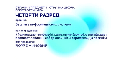 СШ4 – Заштита информационих система, 9. час: Појам и методе аутентификације, квалитет лозинки, избор лозинки