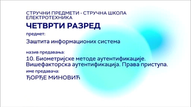 СШ4 – Заштита информационих система, 10. час: Биометријске методе аутентификације. Вишефакторска аутентификација...