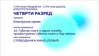 СШ4 – Електричне мреже, 10. час: Губитак снаге и однос између процентуалног губитка снаге и пад напона