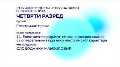 СШ4 – Електричне мреже, 11, час: Електрични прорачун нисконапонских водова са оптерећењима која нису чисто омског карактера