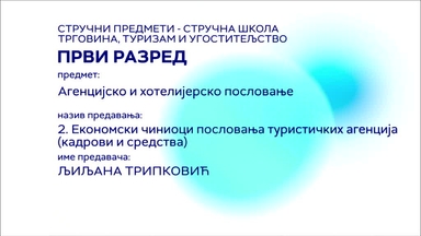 СШ1 – Агенцијско и хотелијерско пословање, 2. час: Економски чиниоци пословања туристичких агенција (кадрови и средства)