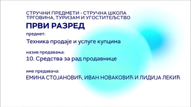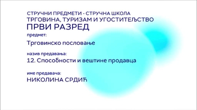 СШ1 – Техника продаје и услуге купцима, 16. час: Продавац, политика продаје у малопродаји, профил продавца и улога продавца…