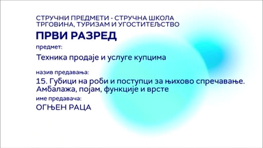 СШ1 – Техника продаје и услуге купцима, 15. час: Губици на роби и поступци за њихово спречавање. Амбалажа, појам...