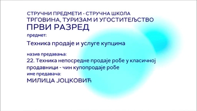 СШ1 – Техника продаје и услуге купцима, 22. час: Техника непосредне продаје робе у класичној продавници