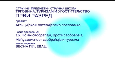 СШ1 – Агенцијско и хотелијерско пословање, 1. час: Дефинисање туристичке агенције, агенцијска делатност...