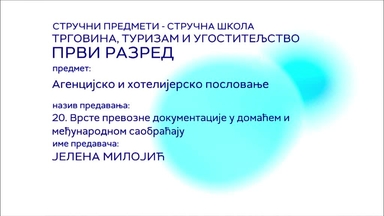 СШ1 – Агенцијско и хотелијерско пословање, 20. час: Врсте превозне документације у домаћем и међународном саобраћају