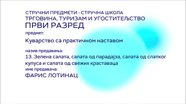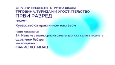СШ1 – Куварство са практичном наставом, 14. час: Мешане салате, српска салата, шопска салата и салата од зелених бабура