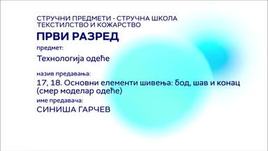 СШ1 – Технологија одеће, 17. и 18. час: Основни елементи шивења: бод, шав и конац (смер моделар одеће)