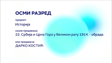 ОШ8 – Историја, 16. час: Српски народ под османском влашћу на почетку 20. века и балкански ратови (утврђивање)