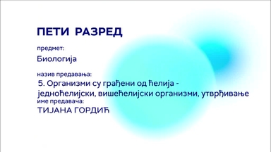 ОШ5 – Биологија, 5. час: Организми су грађени од ћелија - једноћелијски, вишећелијски организми (утврђивање)