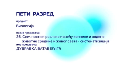 ОШ5 – Биологија, 36. час: Сличности и разлике између копнене и водене животне средине и живог света - систематизација