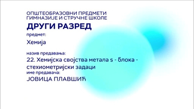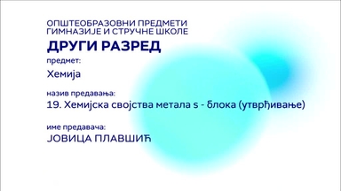 СШ2 – Хемија, 13. час: Елементи S-блока ПСЕ (физичка својства, налажење, примена, добијање) Предавач: Милица Брусин