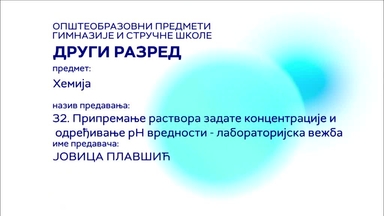 СШ2 – Хемија, 32. час: Припремање раствора задате концентрације и одређивање pH вредности (лабораторијска вежба)