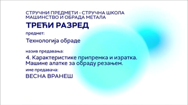 СШ3 – Технологија обраде, 4. час: Карактеристике припремка и изратка. Машине алатке за обраду резањем