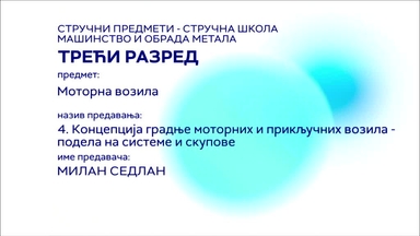 СШ3 – Моторна возила, 4. час: Концепција градње моторних и прикључних возила – подела на системе и скупове