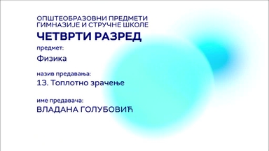 СШ4 – Физика, 13. час: Топлотно зрачење