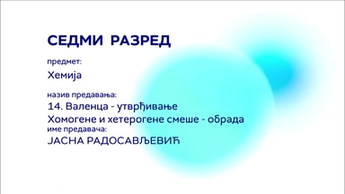 ОШ7 – Хемија, 9. час: Периодни систем елемената, племенити гасови, својства и примена - обрада. Одређивање валентног нивоа...