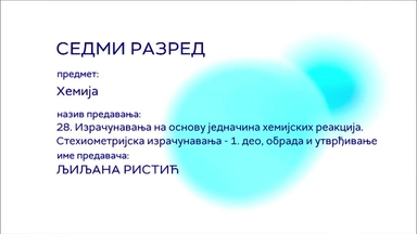 ОШ7 – Хемија, 28. час: Израчунавања на основу једначина хемијских реакција. Стехиометријска израчунавања – 1. део...