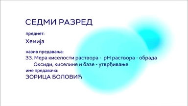 ОШ7 – Хемија, 33. час: Мера киселости раствора - pH раствора (обрада). Оксиди, киселине и базе (утврђивање)