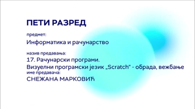 ОШ5 – Информатика и рачунарство, 17. час: Рачунарски програми. Визуелни програмски језик "Scratch" (обрада, вежбање)