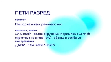 ОШ5 – Информатика и рачунарство, 19. час: Scratch - радно окружење (Коришћење Scratch...), обрада и вежбање