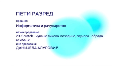 ОШ5 – Информатика и рачунарство, 23. час: Scratch – чување ликова, позадина, звукова (обрада, вежбање)