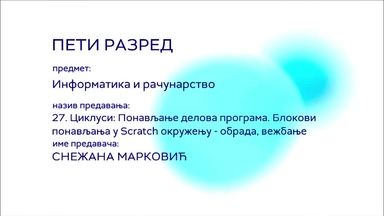 ОШ5 – Информатика и рачунарство, 27. час: Циклуси: Понављање делова програма. Блокови понављања у Scratch окружењу...