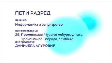 ОШ5 – Информатика и рачунарство, 29. час: Променљиве: Чување међурезултата. Променљиве (обрада, вежбање)