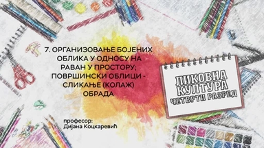 ОШ4 – Ликовна култура, 7. час: Организовање бојених облика у односу на раван у простору, површински облици... (обрада)